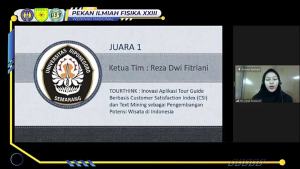Reza Dwi Fitriani (2017) dan Anestasya Nur Azizah (2017) berhasil menjuarai Lomba Tulis Esai Online Nasional (LTE-ON), yang merupakan serangkaian acara Pekan Ilmiah Fisika (PIF)