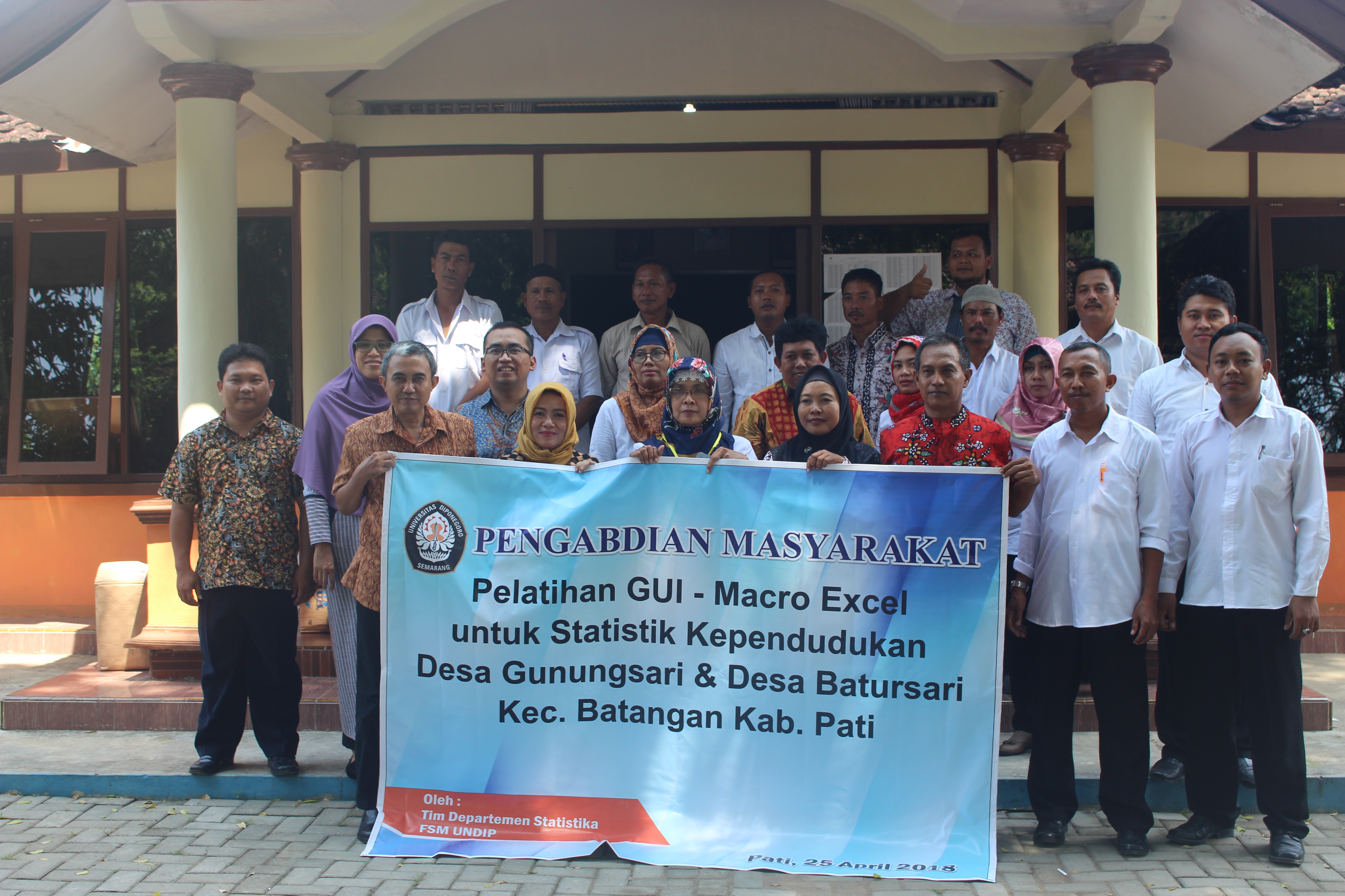 Pada Hari Rabu Tanggal 25 April 2018, tim pengabdian dari departemen Statistika melakukan pengabdian di Desa Batursari dan Gungungsari, Kecamatan Batangan Kabupaten Pati. Kegiatan tersebut dihadiri perangkat-perangkat desa Batursari dan Gunungsari. Kegiatan tersebut dilakukan sebagai bentuk tri dharma perguruan tinggi. Pembuatan basis data kependudukan menggunakan Microsoft Excel. Para peserta diajarkan membuat basis data untuk diterapkan ditempatnya masing-masing. Mereka sangat antusias dalam mengikuti acara tersebut Acara tersebut dimulai pukul 09.00 WIB dan berakhir pukul 15.00 WIB bertempat di balai kelurahan Gunungsari, Kecamatan Batangan, Kabupaten Pati.